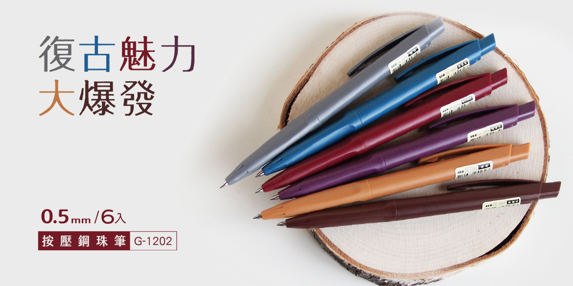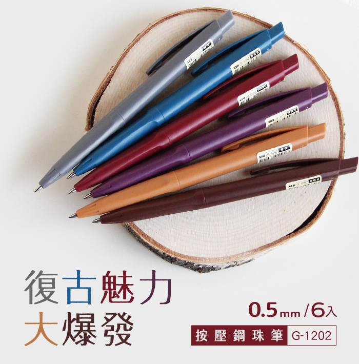 G-1202 復古色按動鋼珠筆 【0.5mm/6入】