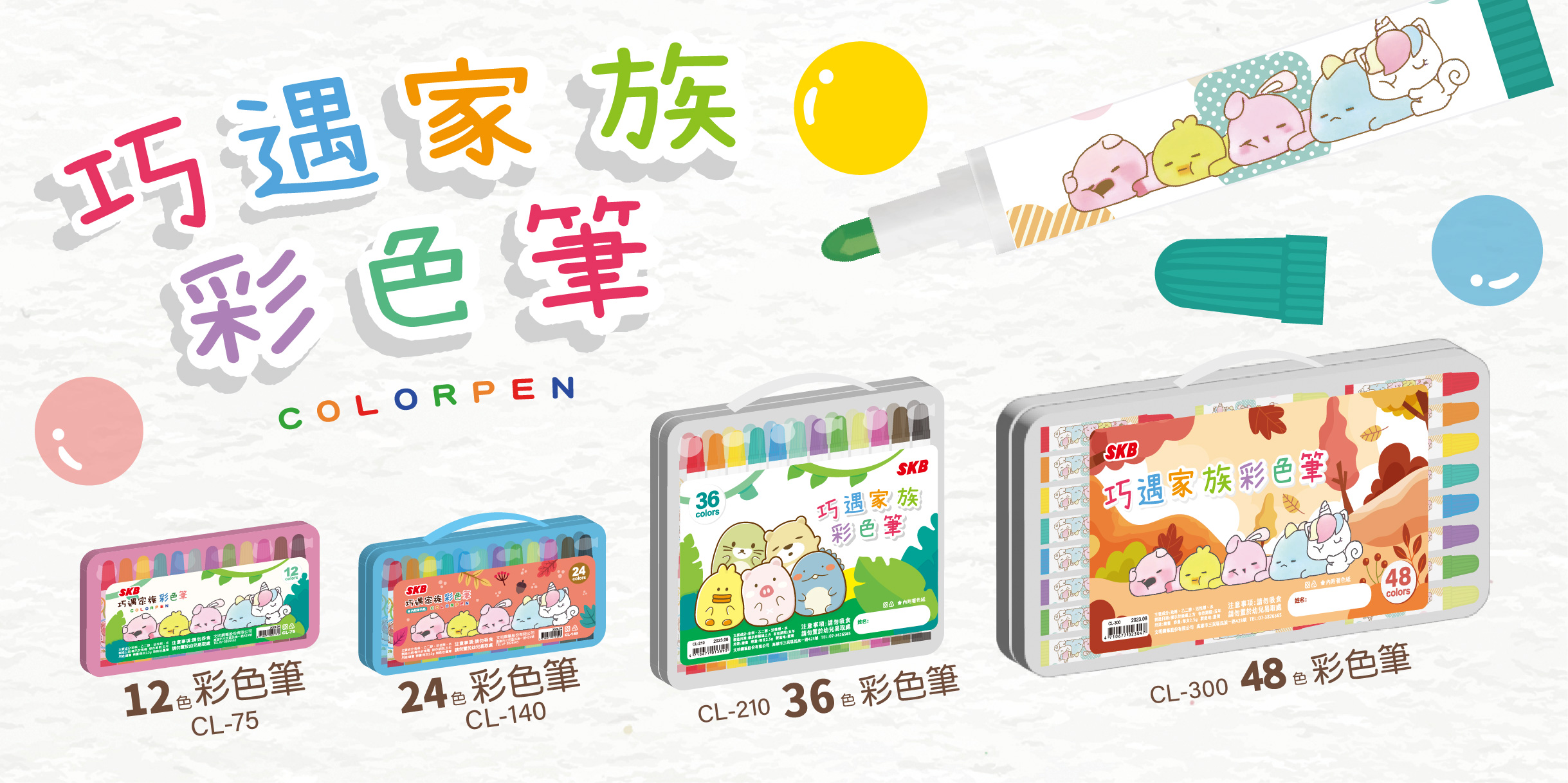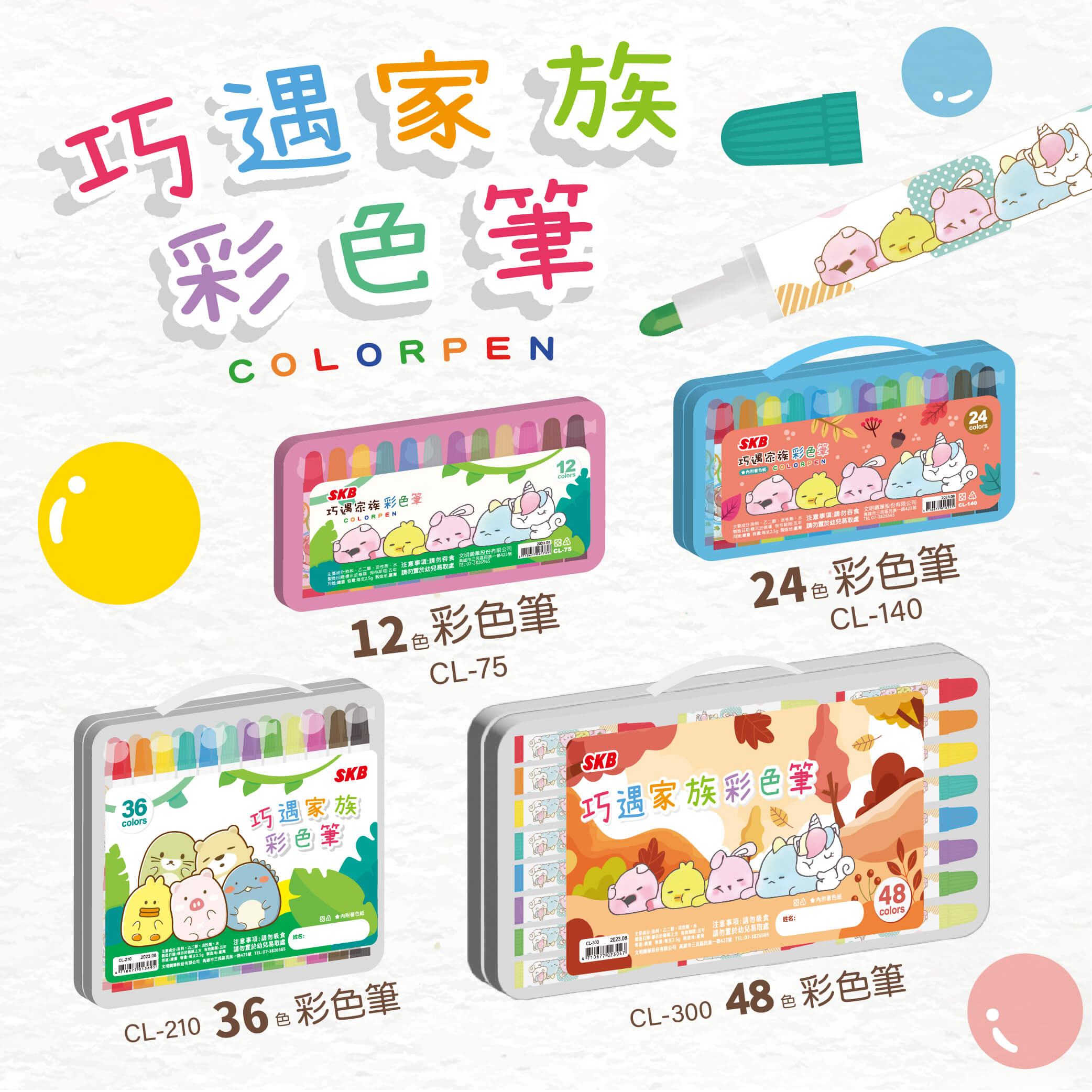 CW-260 胖福星球可水洗彩色筆 【36色】