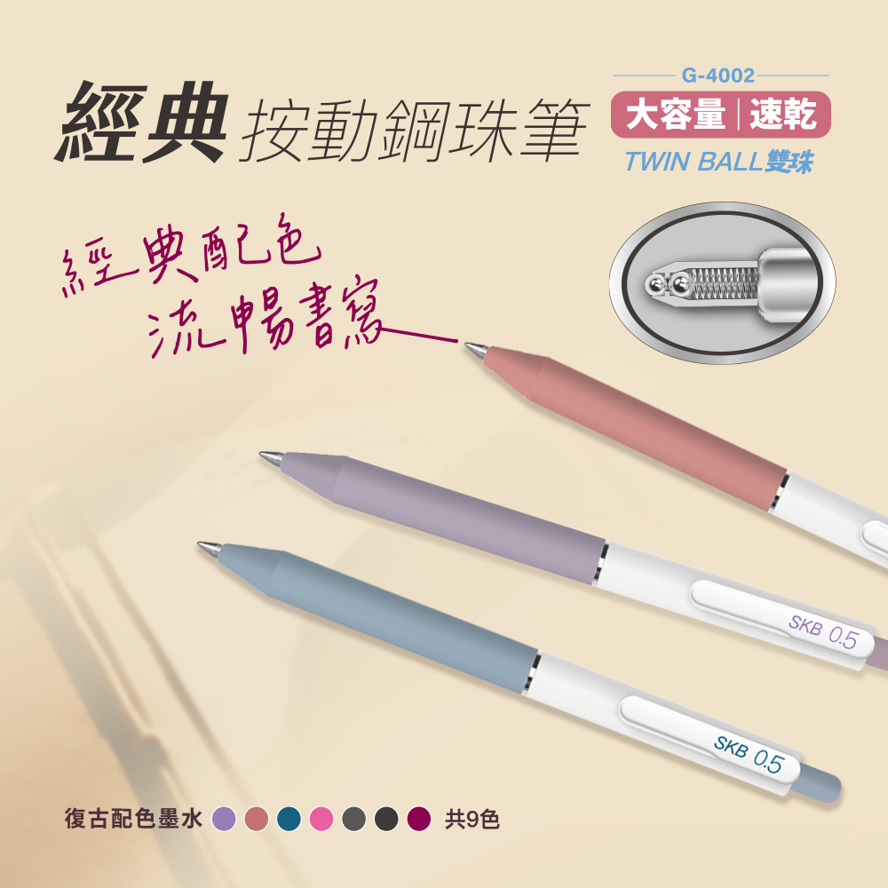 G-4002 經典按動鋼珠筆 復古配色 0.5mm 【共7色】