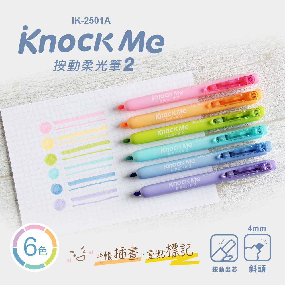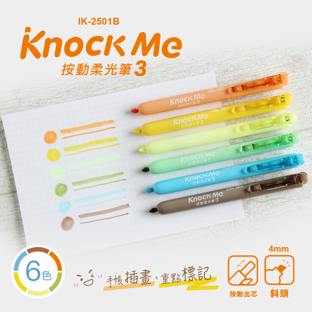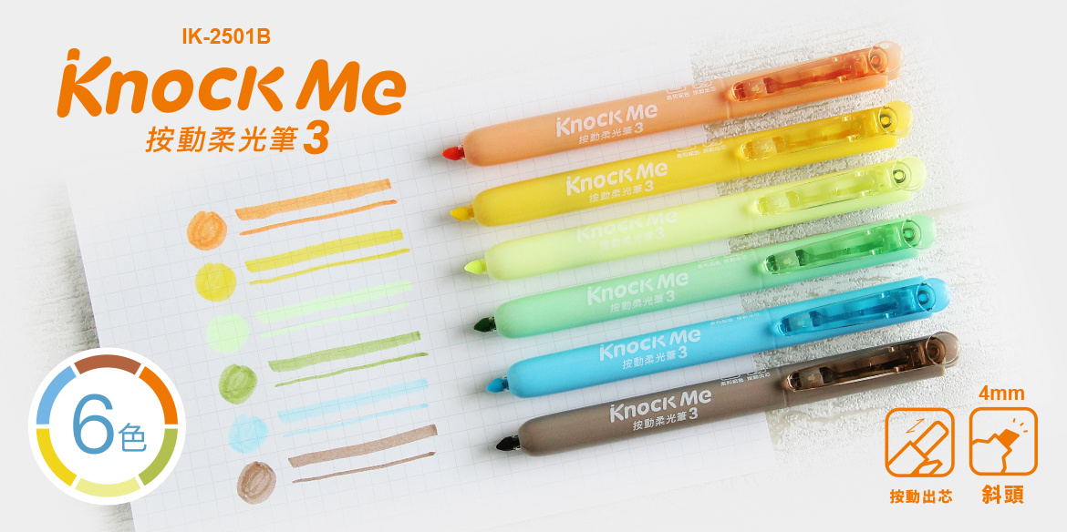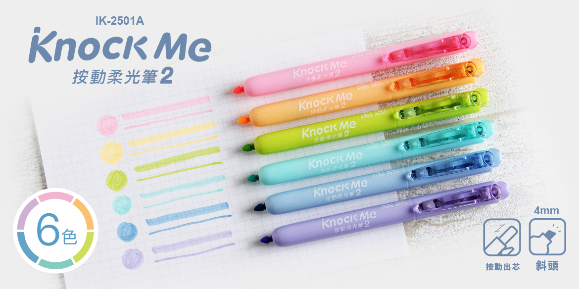 IK-2501A 按動柔光筆 6入6色【4mm / 斜頭】