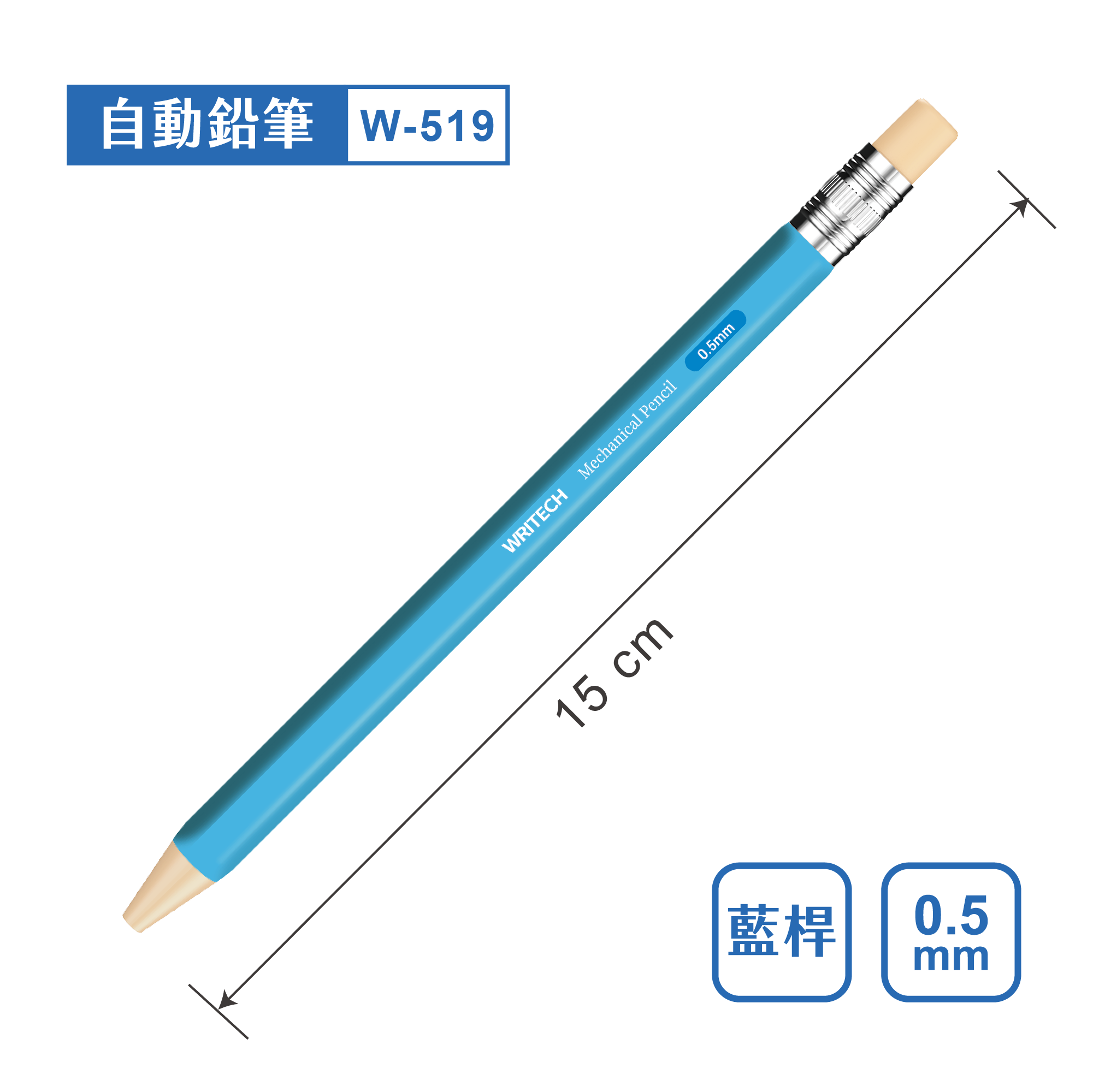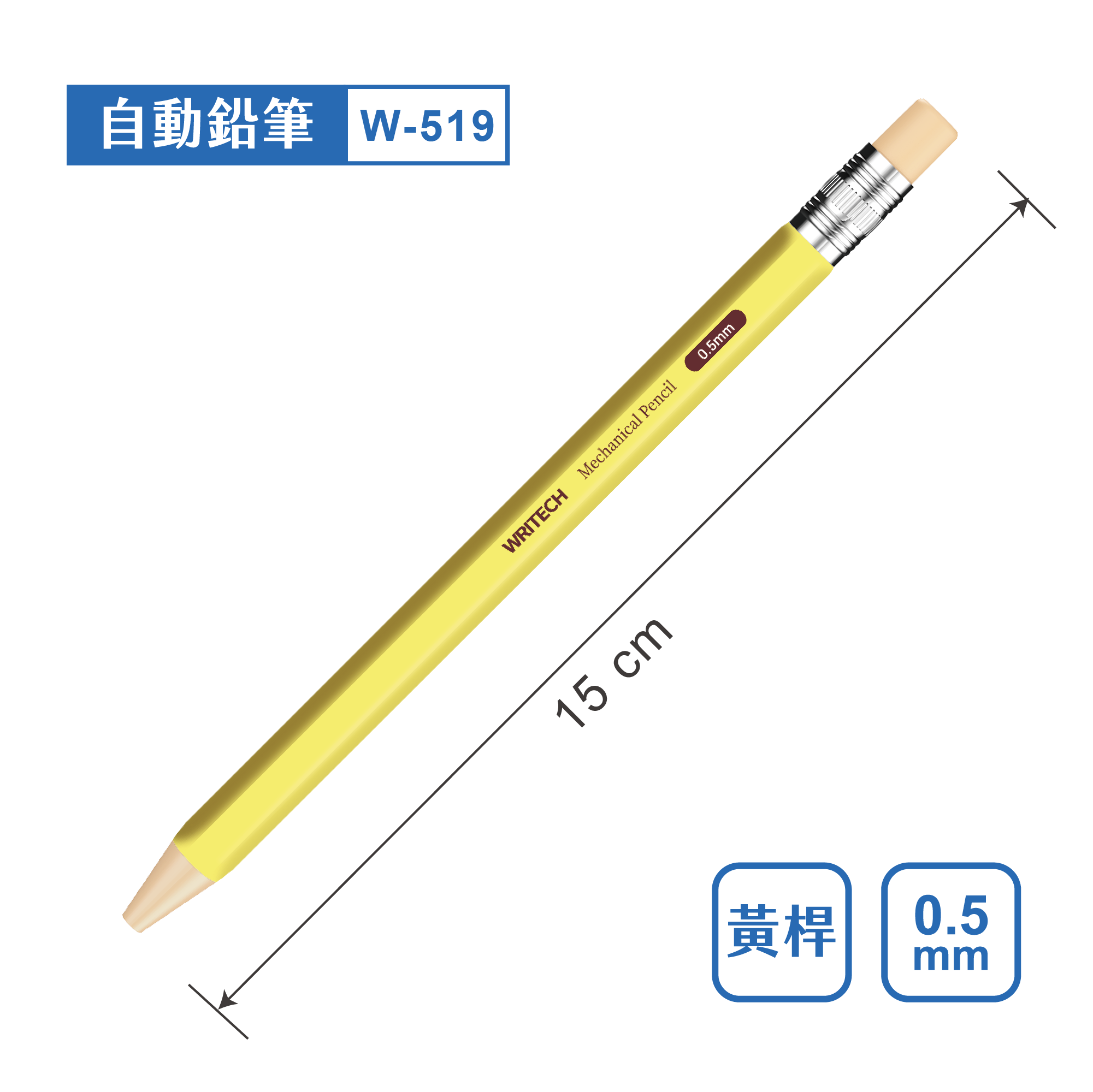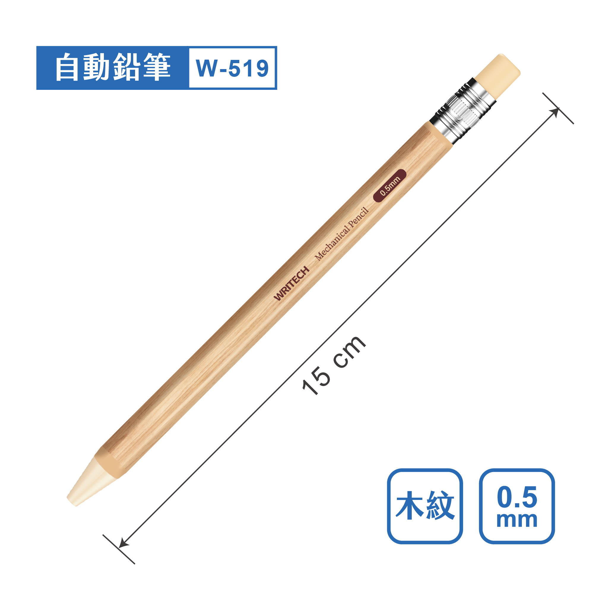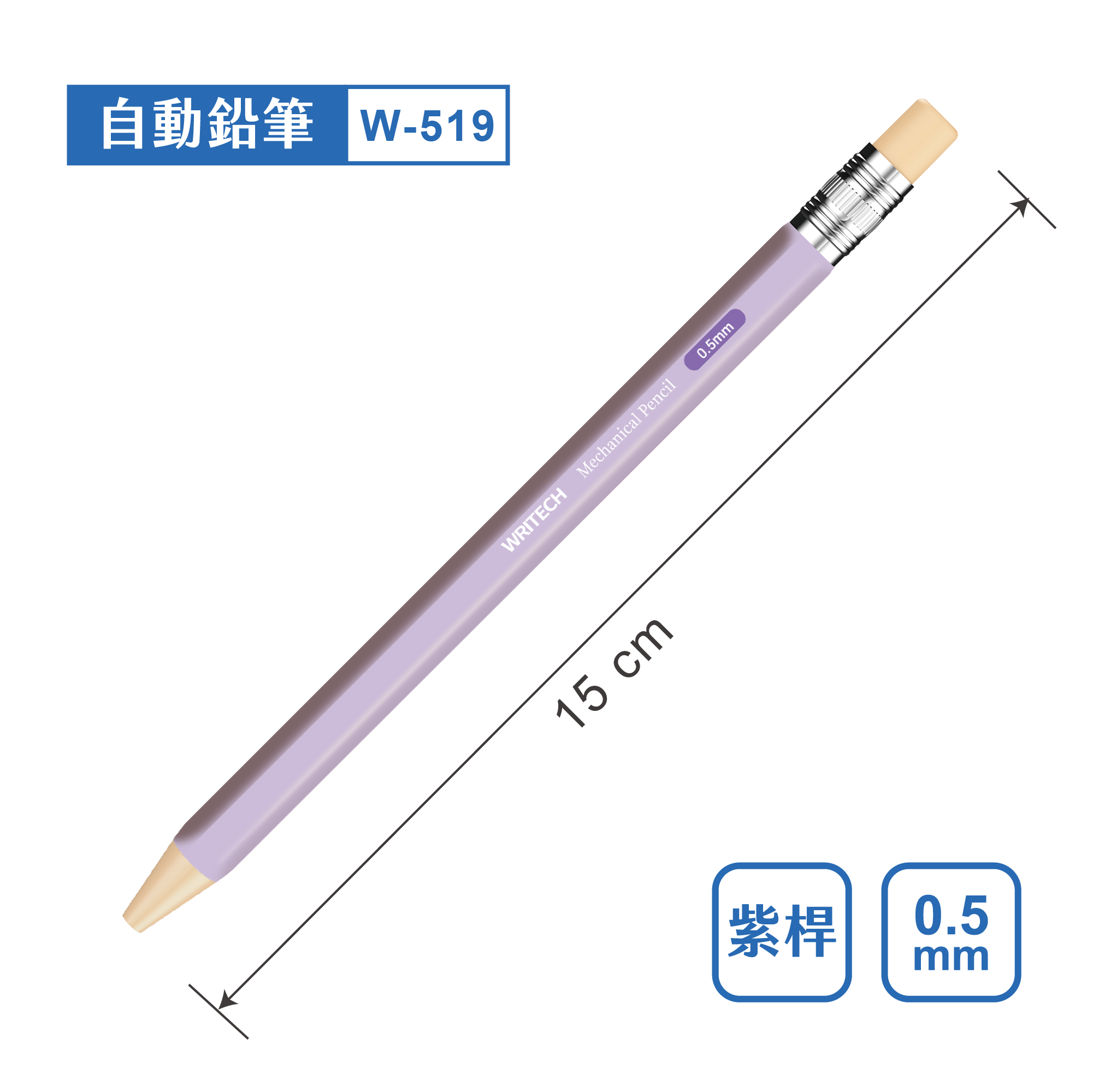 本公司為Writech之授權代理商,商品皆為原廠進口。 主要成分:樹脂、石墨 主要用途:書寫 製造地:中國 保存期限:在適當環境保存無期限 條碼 木紋桿 0840475727497 白桿 0840475727510 黃桿 0840475727503 藍桿 0840475727534 紫桿 0840475727527